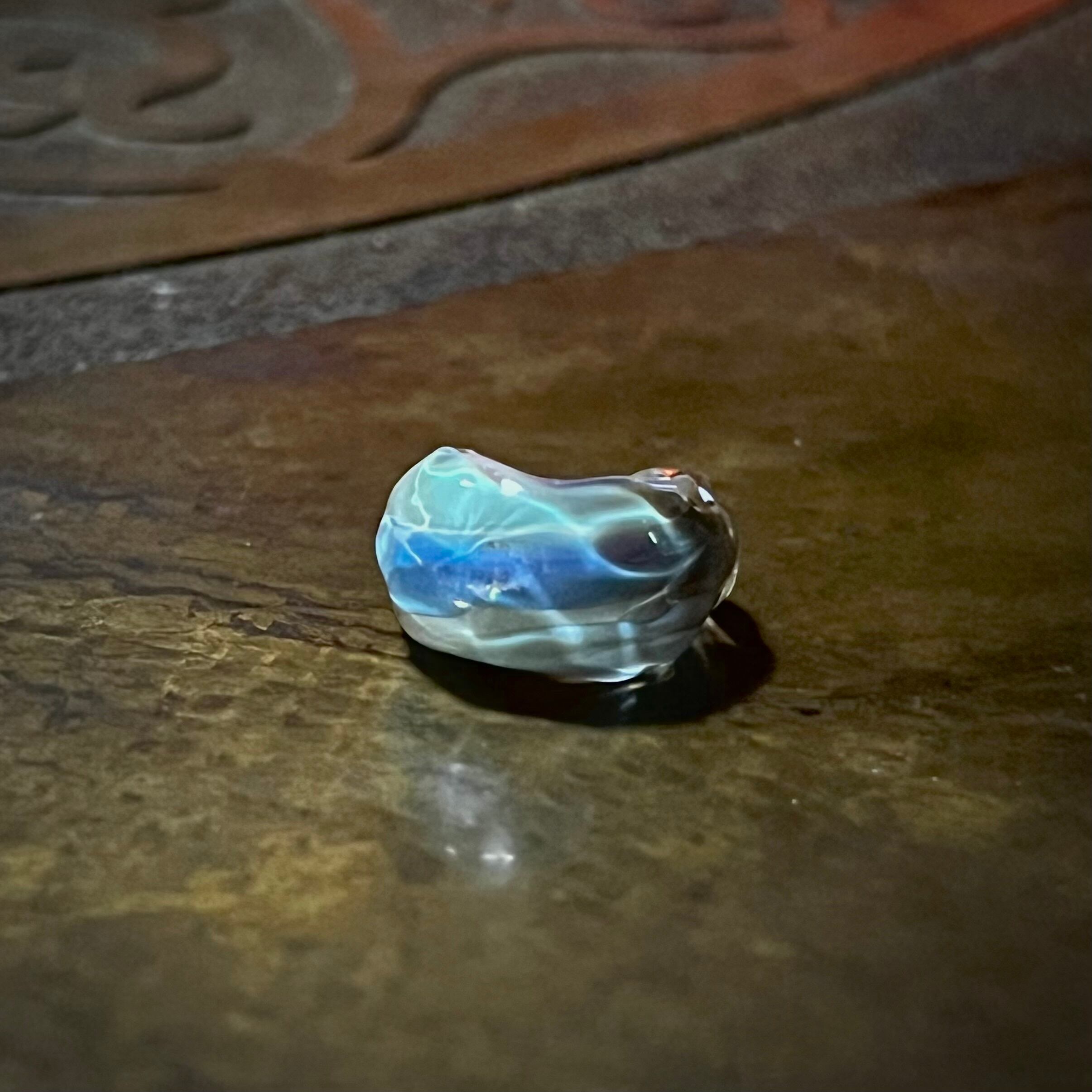 表面は純銀を用いた色付けにより透明感のある青色に輝き、氷のような表情から光を受けて美しく輝きます.